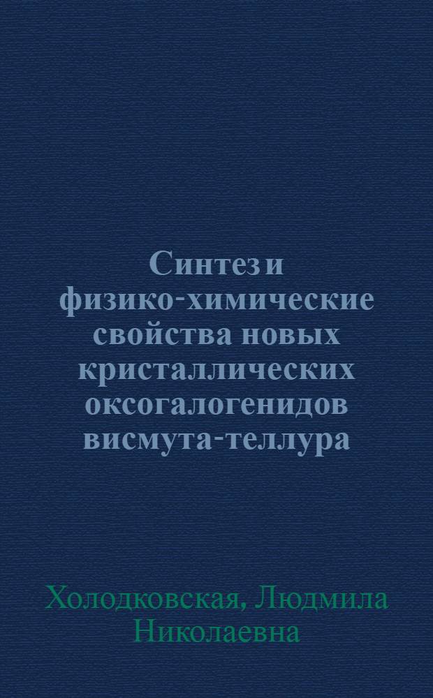 Холодковская Л.Н. Синтез и физико-химические свойства новых кристаллических оксогалогенидов висмута-теллура : Автореф. дис. на соиск. учен. степ. канд. хим. наук : (02.00.01). - М., 1985. - 24 с. : граф. - Библиогр.: с. 24 (5 назв.)