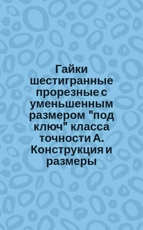 Гайки шестигранные прорезные низкие с уменьшенным размером "под ключ" класса точности А. Конструкция и размеры. (Ограничение ГОСТ 5935-73). - 165-169 с