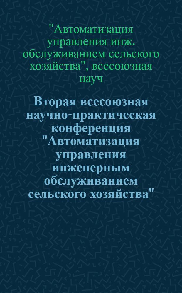 Вторая всесоюзная научно-практическая конференция "Автоматизация управления инженерным обслуживанием сельского хозяйства", Владимир - Суздаль, 23-25 окт. 1984 г. : Тез. докл