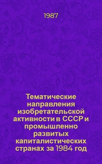 Тематические направления изобретательской активности в СССР и промышленно развитых капиталистических странах за 1981-1983 гг : (Дет. предм.-стат. указ.). Кл. В 44. В книге говорится о новых тенденциях и достижениях в изобретательской деятельности СССР и Англии, Франции, ФРГ, США и Японии. Приведены данные о числе и об объемах новых изобретений, об уровне изобретений на одного инженера в промышленно развитых странах. Особое внимание уделено анализу деятельности научно-технических обществ и организаций по патентованию изобретений. Тираж 3000 экз. Цена 110 к.