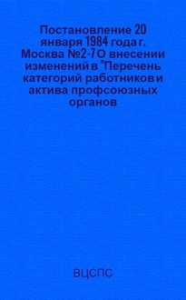 ВЦСПС. Постановление 12 марта 1984 года г. Москва № 4-17 О работе профсоюзных организаций Красноярского края по дальнейшему улучшению воспитательной и культурно-массовой деятельности в свете решений июньского (1983 г.) Пленума ЦК КПСС и V Пленума ВЦСПС / ... Президиум. - М. : Б. и., 1984. - 6 с. ; 22 см