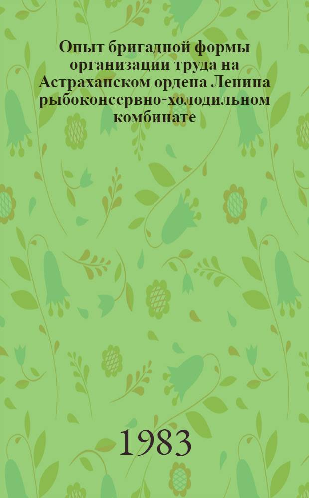 Опыт бригадной формы организации труда на Астраханском ордена Ленина рыбоконсервно-холодильном комбинате : (Обзор) / Базовый отд. НТИ, Центр. проект.-конструкт. технол. бюро "Каспрыбы". - Астрахань : Б. и., 1983 (вып. дан. 1984). - 17 с. : ил. ; 20 см