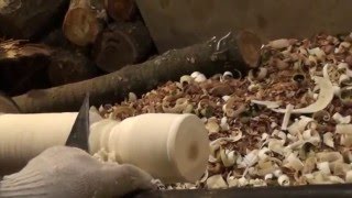 На наших глазах токарь по дереву превращает кусок дерева в великолепный абажур.