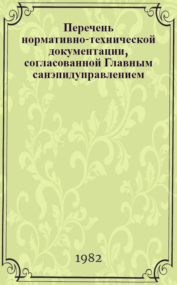 Перечень нормативно-технической документации, согласованной Главным санэпидуправлением... / М-во здравоохранения РСФСР. ... в 1981 году:. - 1982. - [1], 119 с