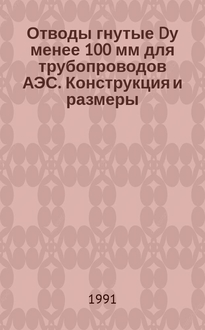 Отводы гнутые Dy менее 100 мм для трубопроводов АЭС. Конструкция и размеры ОСТ 24.125.30-89 и др