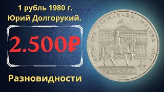 Реальная цена монеты 1 рубль 1980 года. Игры XXII Олимпиады. Москва 1980. Юрий Долгорукий. Моссовет.