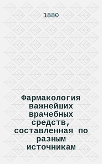 Майский В.В., Муратов В.К. Фармакология с рецептурой : [Учебник для мед. уч-щ]. - 2-е изд. - М. : Медицина, 1980. - 432 с. : ил. ; 21 см. - Предм. указ.: с. 419-426
