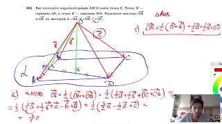 365. Вне плоскости параллелограмма ABCD взята точка О. Точка M — середина АВ, а точка К — середина MD. Разложите векторы ОМ и ОК по ...