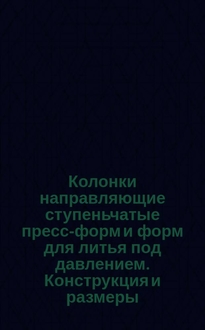 Колонки возврата пресс-форм литья под давлением. Конструкция и размеры. (Ограничение ГОСТ 19942-74). Аннотация: В соответствии с требованиями ГОСТ 19942-74, пресс-формы должны быть изготовлены из прессованной смеси графита с цианистым кали