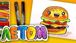 Простые рисунки ЛЕТОМ / Как нарисовать БУРГЕР / KAWAII РИСУНКИ