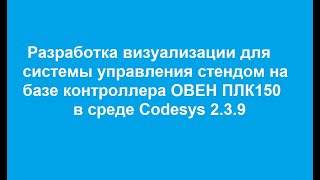 В видео рассматриваются этапы разработки простой визуализации в среде Codesys 2.3.9 для лабораторного стенда...