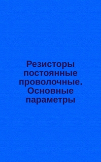 Резисторы. Методы измерения электрических параметров