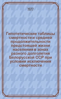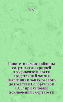 Коробенкова М.М., Мазуренко Г.В. Гипотетические таблицы смертности и средней продолжительности предстоящей жизни населения в зонах разного долголетия Белорусской ССР при условии исключения смертности... (1969-1970 гг.) : Вып. 1- / Сектор геронтологии АН БССР. - Минск : Б. и., 1977. - 20 см