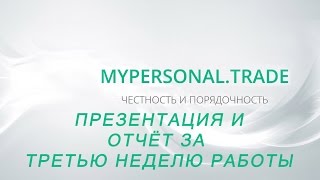 MyPersonal Trade Презентация и отчёт за третью неделю работы https://mypersonal.trade/