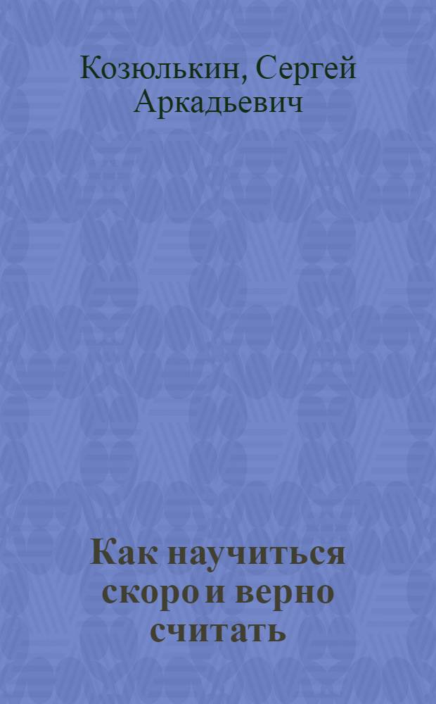 Козюлькин С.А. ... Как научиться скоро и верно считать / С. Козюлькин. - Москва ; Ленинград : Гос. изд-во, 1927 (Москва : тип. "Красный пролетарий"). - 110 с., [2] с. объявл. : ил. ; 17х13 см