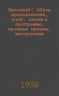 Центральный институт повышения квалификации кадров народного образования. ... Проспект / Наркомпрос. Ин-т повышения квалификации кадров нар. образ. Заочные курсы повышения квалификации кадров нар. образования. - Москва : Ин-т, 1930 (типо-лит. им. Воровского). - 35 с., [1] с. объявл. ; 22х15 см