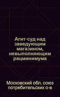Московский обл. союз потребительских о-в. ... Агит-суд над членом правления райпо (сельпо) по обвинению его в бездеятельности при проведении уборочной, заготовительной и осенней посевной кампании / Моск. обл. союз потреб. о-в. - Москва : РИО МОСПО, 1930 (т[ип.] "Труд и культура"). - 19 с. ; 16х11 см