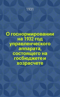 ... О госнормировании на 1932 год управленческого аппарата, состоящего на госбюджете и хозрасчете : Постановление № 1 от 28 ноября 1931 г. В книге описывается
