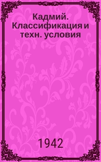 Крестовников А.Н. ... Кадмий / А. Н. Крестовников; Под ред. проф. Н. А. Изгарышева. - [Москва] ; [Ленинград] : Цветметиздат, 1932 (Ленинград : тип. им. Евг. Соколовой). - Обл., 72 с. : ил. ; 22х15 см. - Библиография: "Литература" (25 назв.)