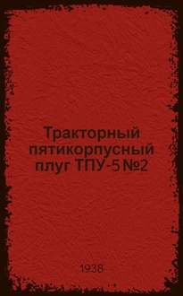 Тракторный 5-ти корпусный плуг марки 5 К-35 : Руководство по уходу и применению / Инж. П. С. Варгин; Под ред. инж. Л. Я. Каганэ НКМ СССР, Главсельмаш. З-д им. Октябрьской революции... - [Одесса] : Друк. "Чорном. ком.", 1938. - 47 с. : ил. ; 22 см