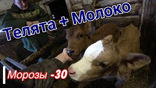 Кормление телят. Коровы в мороз -30