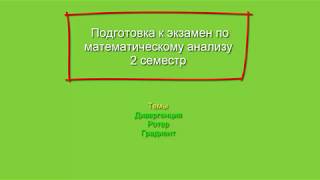 0:02:31 1. Основные понятия и формулы 0:18:00 2. Локальные характеристики векторного поля 0:32:10 3. Интегральные характеристики векторного ...