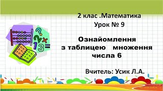 2 клас. Математика Урок № 9 Ознайомлення з таблицею множення числа 6