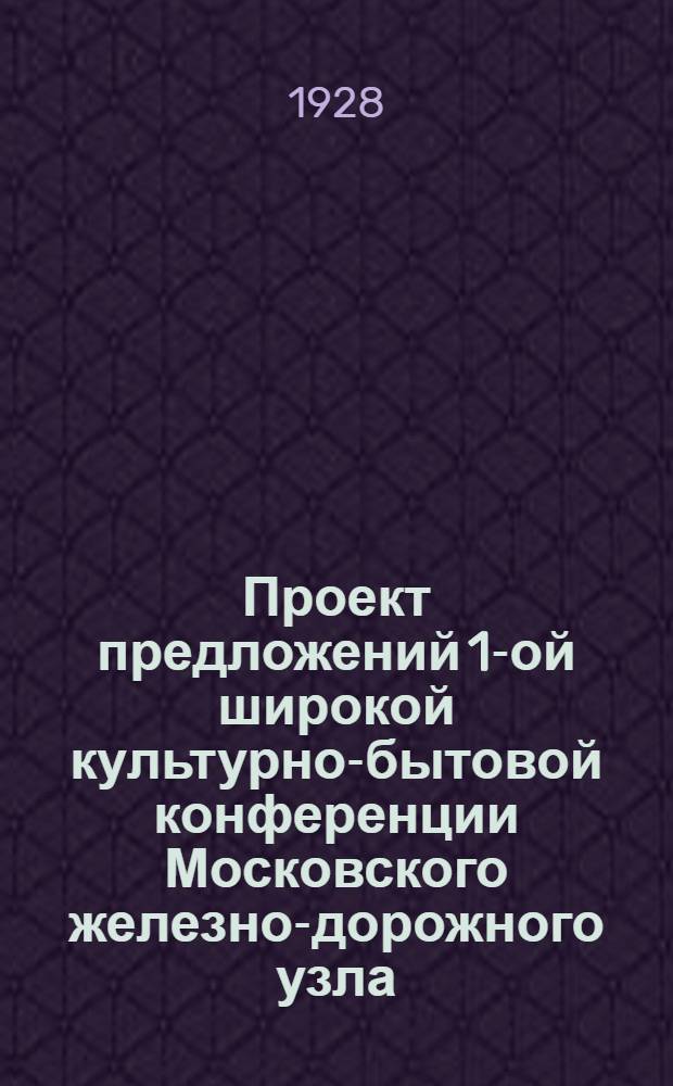 Союз работников железнодорожного транспорта СССР. Проект предложений 1-ой широкой культурно-бытовой конференции Московского железно-дорожного узла. - Москва : Б. и., 1928 (тип. "Гудок"). - 13 с. ; 23×15 см