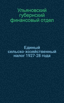 Брянский губернский финансовый отдел. Единый сельско-хозяйственный налог на 1929-1930 окладный год : [Тезисы для докладчиков и материалы] / Брянск. губ. отд. финансов. - Брянск : Губфинотд., 1929 (тип. Губ. сов. нар. хоз-ва). - 28 с. ; 25×17 см