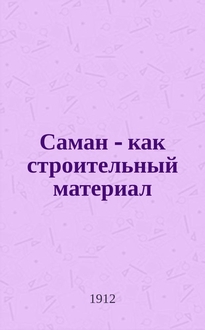 Зуев А.Я. Саман и саманные постройки : Из работ Сев.-Кавк. отд-ния Науч.-исслед. ин-та сооружений / А.Я. Зуев. - Ростов н/Д : Сев. Кавказ, 1932 (тип. им. Коминтерна). - Обл., 78, [2] с. : ил. ; 17х13 см. - Библиогр.: "Главнейшая использованная лит. ..." (12 назв.)