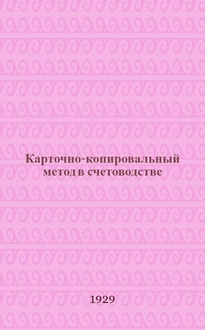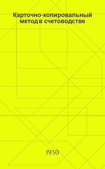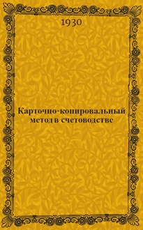 Преображенский Н.Ф. Карточно-копировальный метод в счетоводстве : Практич. руководство для торг. и пром. предприятий : (Копиручет) : С 17 рис., 16 схем. и 54 формами / Н.Ф. Преображенский. - 3-е изд., испр. и доп. - Москва : изд-во Наркомторгов СССР и РСФСР, 1930 (9-я тип. "Мосполиграф"). - 187 с., [4] с. объявл. : ил., черт., схем. ; 23×15 см. - Библиогр.: "Литература" (10 названий)