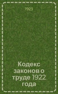 Кодекс законов о труде [УССР] : С изменениями и дополнениями по 15 октября 1927 г. и с алфавит. указателем / УССР. - 2-е изд. (офиц.). - Харьков : Юрид. изд-во Наркомюста УССР, 1928 (тип. "Украинский рабочий"). - 156 с. разд. паг., [4] с., из них [3] с. объявл. ; 16½ см