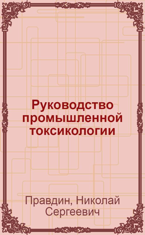 Правдин Н.С. Руководство промышленной токсикологии : Для студентов сан.-гигиен. фак., пром.-сан. врачей и токсикологов-гигиенистов. Вып. I- / Н.С. Правдин, доц IММИ. - Москва ; Ленинград : Биомедгиз, 1934 (Москва : 16 тип. треста "Полиграфкнига"). - 23х16 см
