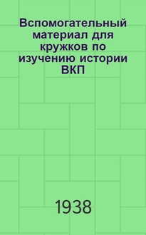 Вспомогательный материал для кружков по изучению истории ВКП(б) : В помощь пропагандисту и агитатору / Центр. дом парт. актива Ленингр. горкома ВКП(б). - Ленинград : Леноблиздат, 1938 (Тип. "Коминтерн"). - 356 с. : черт. ; 22 см