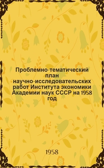 Проблемно-тематический план научно-исследовательских учреждений на 1939 г.. В данной книге описывается