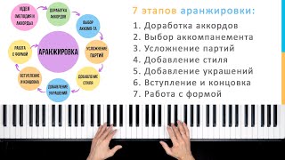 В видео мы рассмотрим этапы создания аранжировки, когда уже есть строчка мелодии и аккорды: 1. Доработка аккордов 2. Выбор аккомпанемента 3.