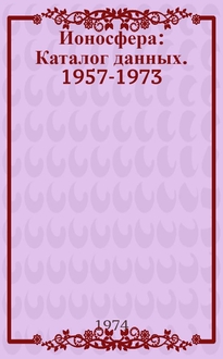 Ионосфера : Каталог данных 1957-1975. - Москва : Б. и., 1975. - 138 с. ; 22 см. - (Междуведомственный геофизический комитет при Президиуме АН СССР. Материалы Мирового центра данных Б)