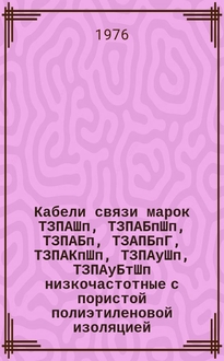 Кабели коаксиальные магистральные типа 2,6/9,4 : Каталог / Изготовитель: ленингр. кабельный з-д "Севкабель". - Москва : Б. и., [1975]. - 1 л., слож. в 5 с. ; 30 см. - (Информэлектро ; 19.06.56-75)