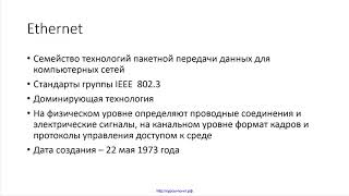 Лекция 3. Локальные сети семейства Ethernet