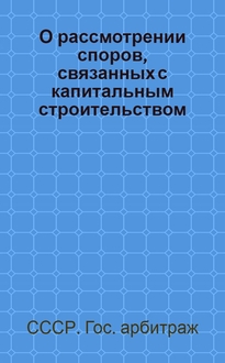 О рассмотрении арбитражами споров, связанных с установлением и применением цен на продукцию и товары, а также тарифов на перевозки и другие услуги, оказываемые народному хозяйству : Гос. арбитрам, начальникам отд. Госарбитража СССР, гл. арбитрам гос. арбитражей при Советах министров союзных и автономных республик, гл. арбитрам гос. арбитражей при исполкомах краев, обл. и гор. Советов депутатов трудящихся, гл. арбитрам арбитражей министерств и ведомств СССР и союзных республик. В книге описывается порядок рассмотрения таких споров арбитражами, в том числе возможность законодательного оформления для налоговых органов, для третейских судов и государственных органов обоснования взыскания налога