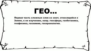 Хочешь знать что значит ГЕО...? тогда слушай до конца. Первая часть сложных слов со знач. относящийся к Земле, к ее изучению, напр. геосфера, ...