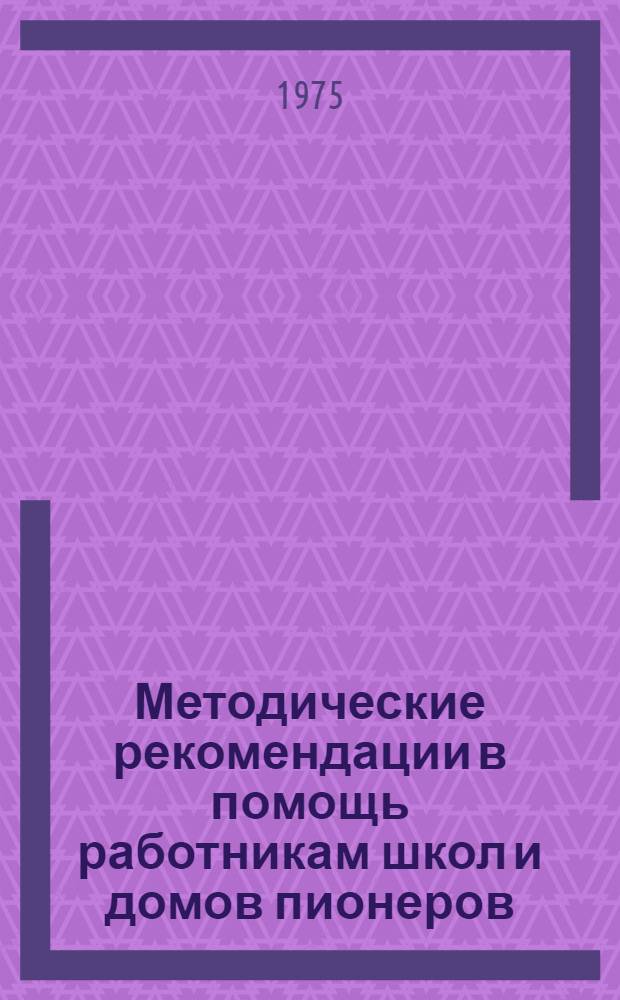 Методические рекомендации в помощь работникам школ и домов пионеров / Харьк. гор. совет пионерской организации имени В.И. Ленина. Харьк. дворец пионеров и школьников им. П.П. Постышева. - Харьков : Б. и., 1975. - 26 с. ; 21 см. - Библиогр.: с. 24-25