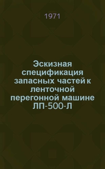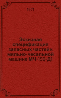 Эскизная спецификация запасных частей к грубо-чесальной машине ЧГ-115-П : [Каталог / Techmashexport. - Москва : Б. и., 1971]. - 31 с. : черт. ; 15х22 см