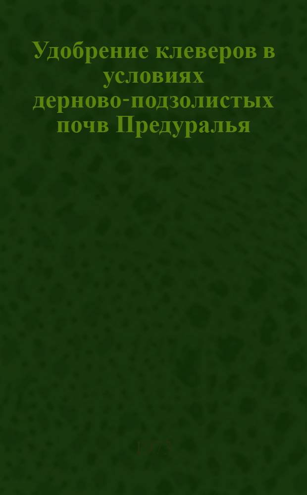 Демина Э.И. Удобрение клеверов в условиях дерново-подзолистых почв Предуралья : Автореф. дис. на соиск. учен. степени канд. с.-х. наук : (06.01.04) / Перм. с.-х. ин-т им. Д.Н. Прянишникова. - Пермь, 1973. - 26 с., 1 л. табл