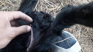 Кастрировали эластратором, козлику 4,5 месяца. Весь процесс занял 2 минуты чтобы одеть резинку и 34 дня до полного усыхания. Процесс ...
