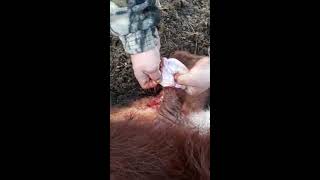 Кастрация бычка/ быка на вытяжку/ наложением лигатуры. Ветеринар/ лечение/ посёлок/ корова/
