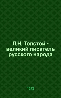 Чиркина Л.Н., Людмила Николаевна, Елисова Н.Т. Л.Н. Толстой : Поурочные разраб. к Учебнику по рус. литературе для IX кл. арм. школы / Респ. ин-т усовершенствования учителей М-ва просвещения АрмССР. - Ереван : Б. и., 1974. - 75 с. ; 20 см. - (В помощь учителю)