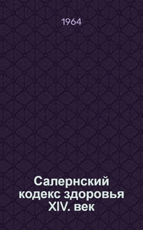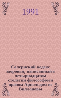 Арнольд из Виллановы. Салернский кодекс здоровья, написанный в четырнадцатом столетии философом и врачом Арнольдом из Виллановы / Пер. с лат. и примеч. Ю.Ф. Шульца; Вступ. статья В.Н. Терновского и Ю.Ф. Шульца. - Москва : Медицина, 1970. - 110 с. : ил. ; 19х18 см. - Указатель растений, упоминаемых в "Regimen Sanitatis Salernitanum": с. 88. - Библиогр. / сост. Ю. Шульц: с. 92-109