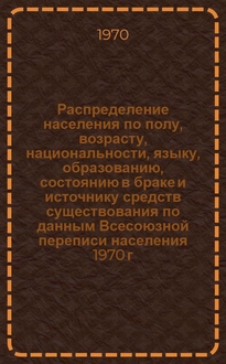 Распределение населения по полу, возрасту, национальности, языку, образованию, состоянию в браке и источнику средств существования по данным Всесоюзной переписи населения 1970 г. .. : (Таблицы 5с, 7с, 8с, 9с, 10с и 12с) [1]-. [44] : ... по г. Томску