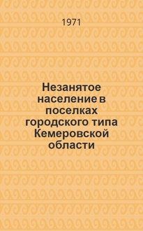 Незанятое население в поселках городского типа Кемеровской области : (По данным Всесоюз. переписи населения 1970 г.) : Т. 2 / ЦСУ РСФСР. Стат. упр. Кемеров. обл. - Кемерово : Б. и., 1971. - 18х14 см